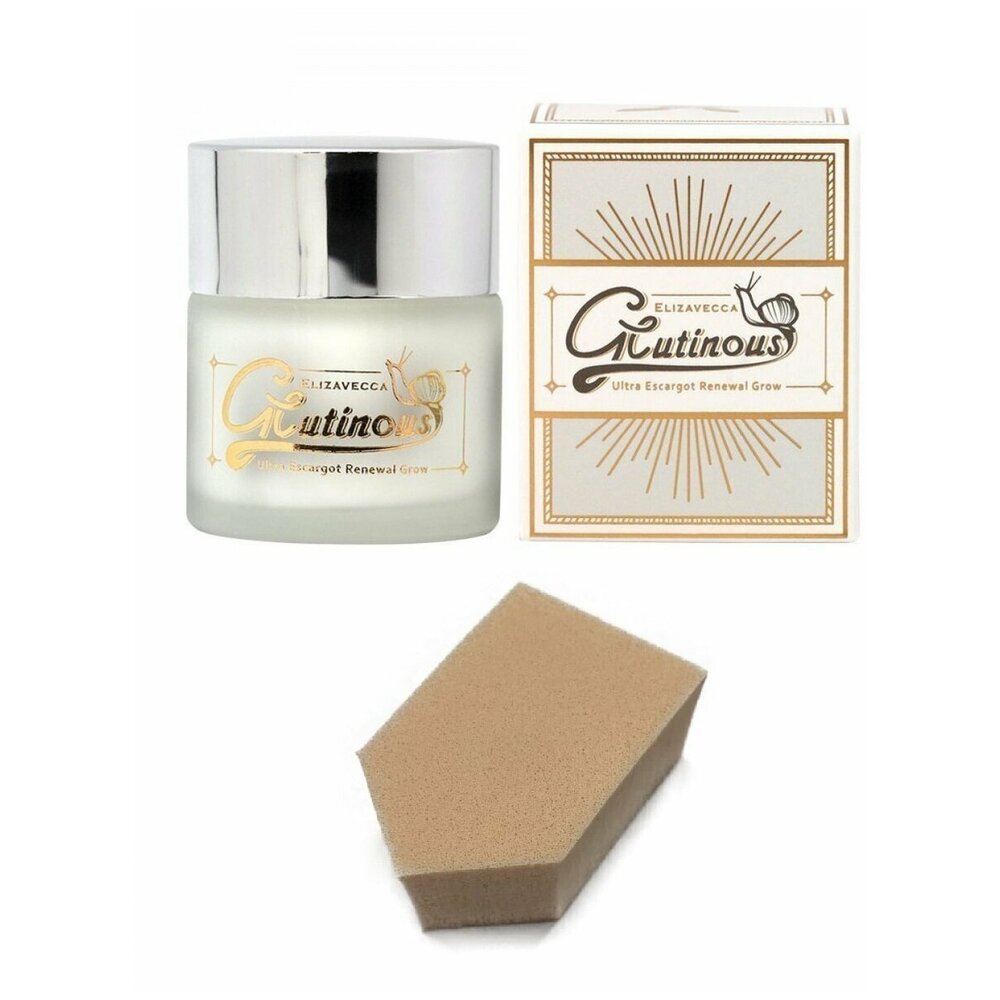 ELIZAVECCA GLUTINOUS Регенерирующий крем для лица с муцином улитки, 50мл + спонж