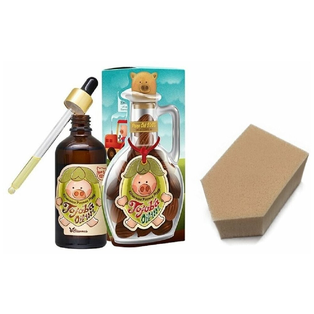 ELIZAVECCA FARMER PIGGY GOJOBA Масло жожоба 100%, 100мл + спонж