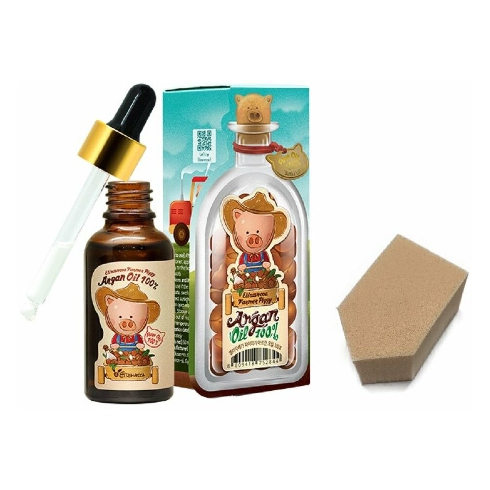 ELIZAVECCA FARMER PIGGY ARGAN OIL Масло арганы 100%, 30мл + спонж