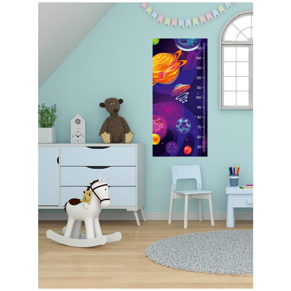 Красивый детский ростомер станет настоящим украшением детской комнаты. Благодаря его яркому и красочному дизайну, процесс измерения роста станет настоящим удовольствием для вашего ребенка. Ростомер имеет клеевую основу, благодаря чему его можно легко приклеить на любую гладкую вертикальную поверхность. При необходимости он легко снимается, не оставляя после себя липких следов. Данные наклейки будут радовать вас и ваших деток,а так же вы сможете видеть как растут ваши детки,оставляю отметки роста ребенка на ростомере.