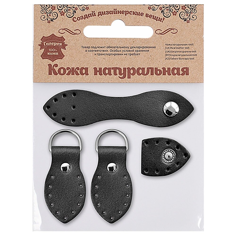 1402 Набор для сумки Застежка 2,5*10,1см-1шт., петельки 3*5,5см-2шт, 100% кожа (80 черный)