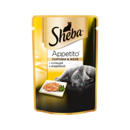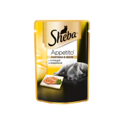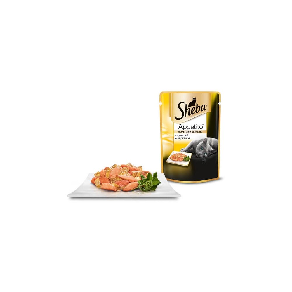 Влажный корм для кошек Sheba Appetito, с курицей, с индейкой 24 шт. х 85 г (кусочки в желе)