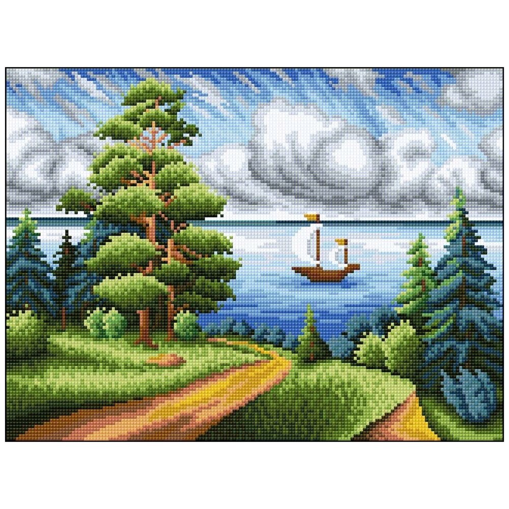 Название : Перед грозой. Техника : Выкладывание стразами (полная выкладка). Размер : 30 х 40 см. Производитель : Алмазная Фея (Россия). Тема : лес, деревья, дорога, тучи, корабль. В состав набора входит: 1. Холст с нанесенным рисунком и клеевым слоем, с условными обозначениями. 2. Квадратные акриловые стразы. 31 цвет. 3. Пинцет, карандаш для захвата страз. 4. Ёмкость для страз. 5. Подробная инструкция. Алмазная фея - российский производитель, специализирующийся на производстве качественных наборов для творчества в технике Алмазная мозаика (иногда называют алмазная вышивка). В наборах алмазная мозаика есть все необходимое: художественный холст с нанесенным рисунком и четкой схемой, надёжный и крепкий клеевой слой, пинцет, стилус, гелевая подушечка, лоток для страз, квадратные акриловые стразы высокого качества, расфасованные по зип-пакетикам. На каждом зип-пакетике указан не только номер цвета страз, но и нарисован символ, которому он соответствуют на схеме. Благодаря этому, искать нужный цвет быстро и удобно. Набор алмазной мозаики упакован в фирменную, плотную картонную коробку, чтобы вы получили его в целости и сохранности. Наборы алмазная мозаика от Алмазной феи будут приятным и красивым подарком для друзей и близких.