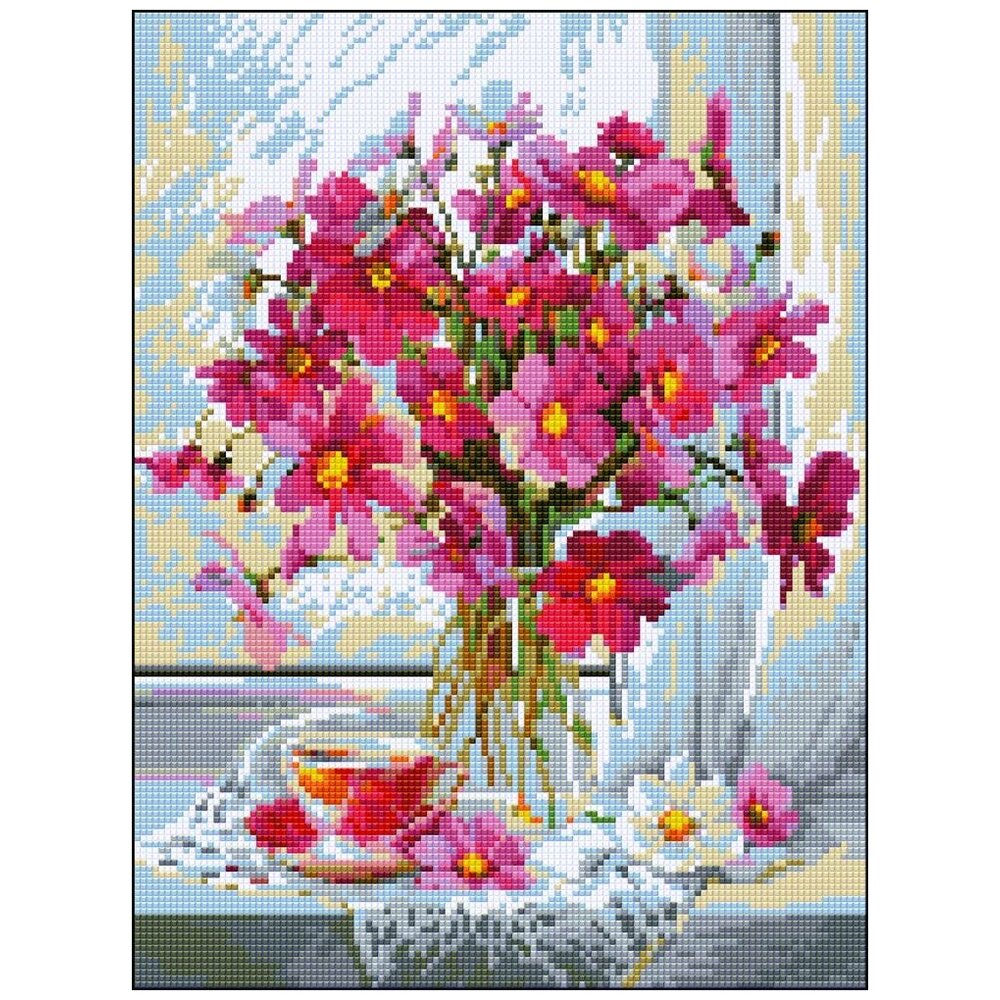 Название : Розовый букет. Техника : Выкладывание стразами (полная выкладка). Размер : 30 х 40 см. Производитель : Алмазная Фея (Россия). Тема : цветы, чашка, натюрморт. В состав набора входит: 1. Холст с нанесенным рисунком и клеевым слоем, с условными обозначениями. 2. Квадратные акриловые стразы. 30 цветов. 3. Пинцет, карандаш для захвата страз. 4. Ёмкость для страз. 5. Подробная инструкция. Алмазная фея - российский производитель, специализирующийся на производстве качественных наборов для творчества в технике Алмазная мозаика (иногда называют алмазная вышивка). В наборах алмазная мозаика есть все необходимое: художественный холст с нанесенным рисунком и четкой схемой, надёжный и крепкий клеевой слой, пинцет, стилус, гелевая подушечка, лоток для страз, квадратные акриловые стразы высокого качества, расфасованные по зип-пакетикам. На каждом зип-пакетике указан не только номер цвета страз, но и нарисован символ, которому он соответствуют на схеме. Благодаря этому, искать нужный цвет быстро и удобно. Набор алмазной мозаики упакован в фирменную, плотную картонную коробку, чтобы вы получили его в целости и сохранности. Наборы алмазная мозаика от Алмазной феи будут приятным и красивым подарком для друзей и близких.
