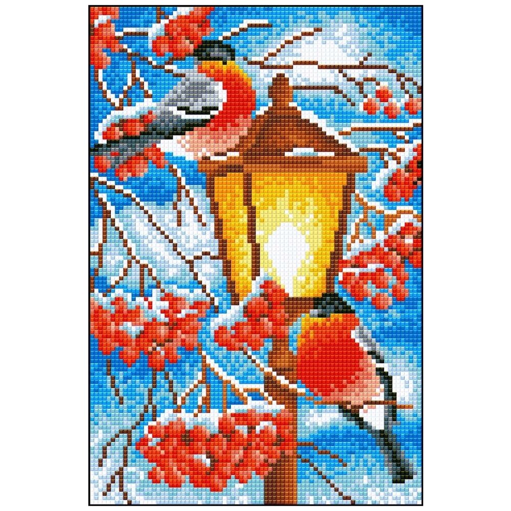 Название : Теплое местечко 2. Техника : Выкладывание стразами (полная выкладка). Размер : 20 х 30 см. Производитель : Алмазная Фея (Россия). Тема : птицы, снегири, фонарь, рябина, зима. В состав набора входит: 1. Холст с нанесенным рисунком и клеевым слоем, с условными обозначениями. 2. Квадратные акриловые стразы. 20 цветов. 3. Пинцет, карандаш для захвата страз. 4. Ёмкость для страз. 5. Подробная инструкция. Алмазная фея - российский производитель, специализирующийся на производстве качественных наборов для творчества в технике Алмазная мозаика (иногда называют алмазная вышивка). В наборах алмазная мозаика есть все необходимое: художественный холст с нанесенным рисунком и четкой схемой, надёжный и крепкий клеевой слой, пинцет, стилус, гелевая подушечка, лоток для страз, квадратные акриловые стразы высокого качества, расфасованные по зип-пакетикам. На каждом зип-пакетике указан не только номер цвета страз, но и нарисован символ, которому он соответствуют на схеме. Благодаря этому, искать нужный цвет быстро и удобно. Набор алмазной мозаики упакован в фирменную, плотную картонную коробку, чтобы вы получили его в целости и сохранности. Наборы алмазная мозаика от Алмазной феи будут приятным и красивым подарком для друзей и близких.