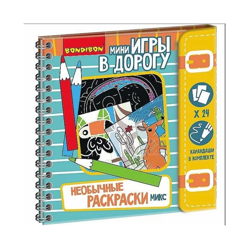 Мини-игры в дорогу "НЕОБЫЧНЫЕ РАСКРАСКИ МИКС" от ТМ Bondibon- это микс трех фонов для раскрашивания: черного, белого с "невидимым" контуром и прозрачного, и расположенные на них забавные рисунки. Раскрашивая необычные поверхности, Вы получите интересный опыт! Черный и прозрачный фоны “оживают” от ярких красок, а "невидимый" фон таит в себе чудеса: просто закрашивайте его разными цветами, посмотрите, что спрятано на белом, на первый взгляд, листе! В комплекте: 24 рисунка для раскрашивания и набор цветных карандашей. Забудьте о скучных путешествиях вместе с замечательными мини-играми в дорогу от BONDIBON! Красочные и компактные, они помогут провести время весело и с пользой! 6+