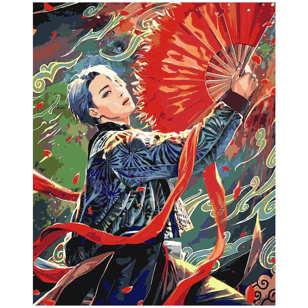 Картина по номерам BTS Jimin с веером, 90 х 120 см