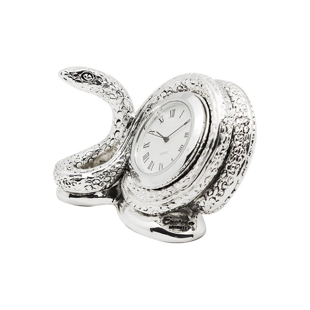 Ищете красивые часы в подарок или для интерьера, но не знаете что выбрать? Часы с фигуркой змейки будет отличным вариантом. Производство Италия, ручная работа. Покрытие посеребрение. Станет отличным подарком или красивыми часами для дома, которые долго будут радовать взгляд и сделают интерьер уютнее. Каждые часы упакована в подарочную коробку, в комплекте так же идет сертификат от производителя. Диаметр часов 3.7 см (37 мм). Диаметр самого циферблата 3 см Внимание! На часах наклеена пленка, для защиты. После покупки рекомендуем снять. Для замены батарейки нужно вытащить часы "на себя", и снять защитную крышку с батарейки.