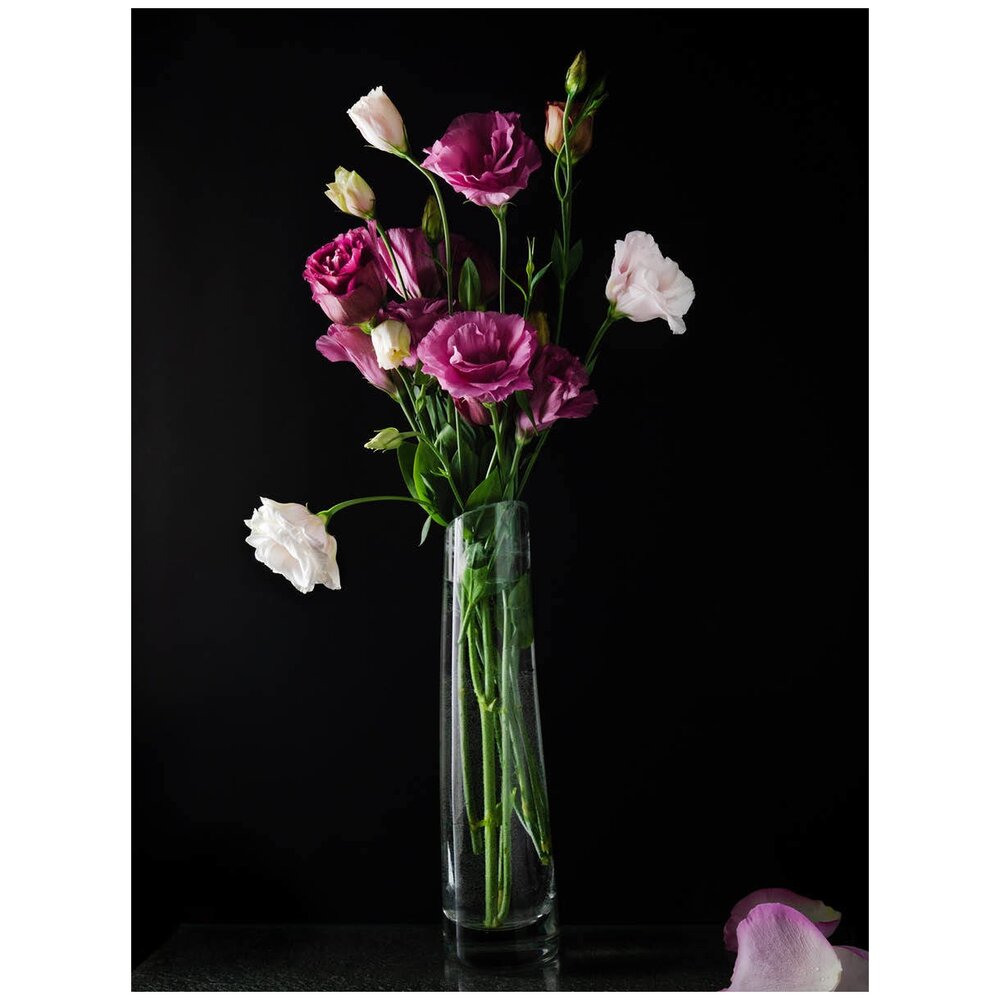 Картины и постеры Woozzee Нежные цветы эустомы в вазе на черном фоне PKI-708-283817