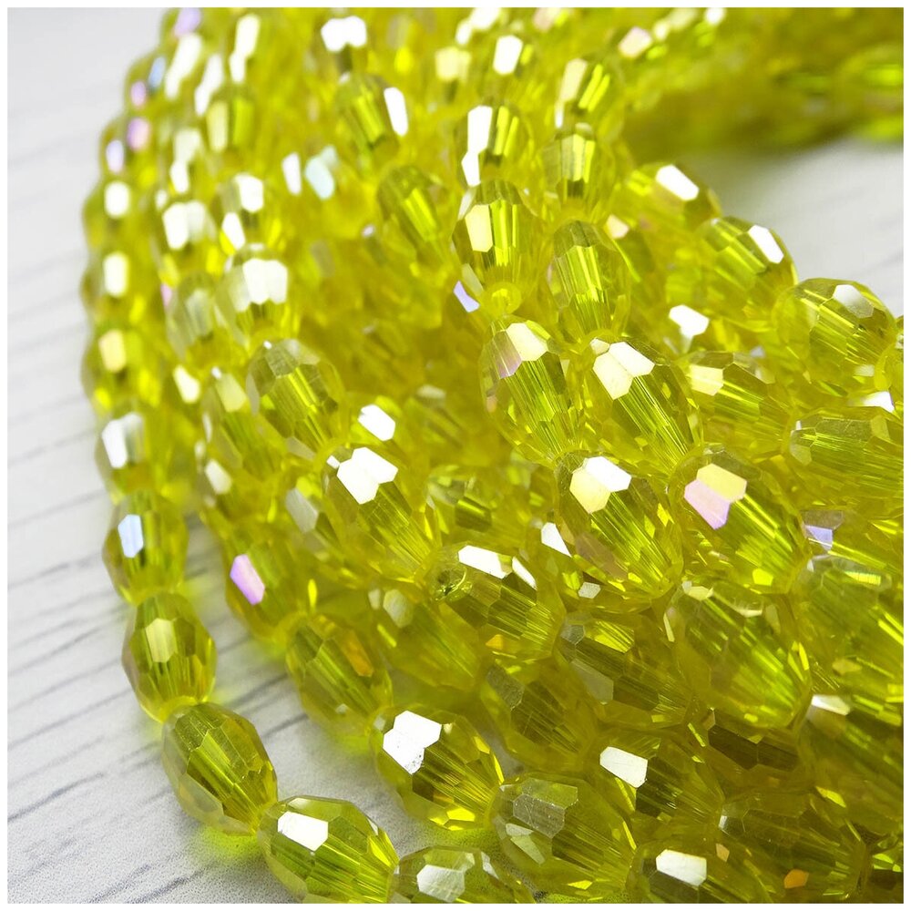 БО002ДС68 Хрустальные бусины формы 'овал' Желтый прозрачный (с покрытием) 6х8 мм, 15 шт/упак. Астра