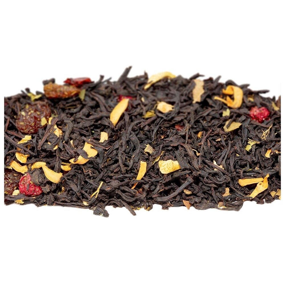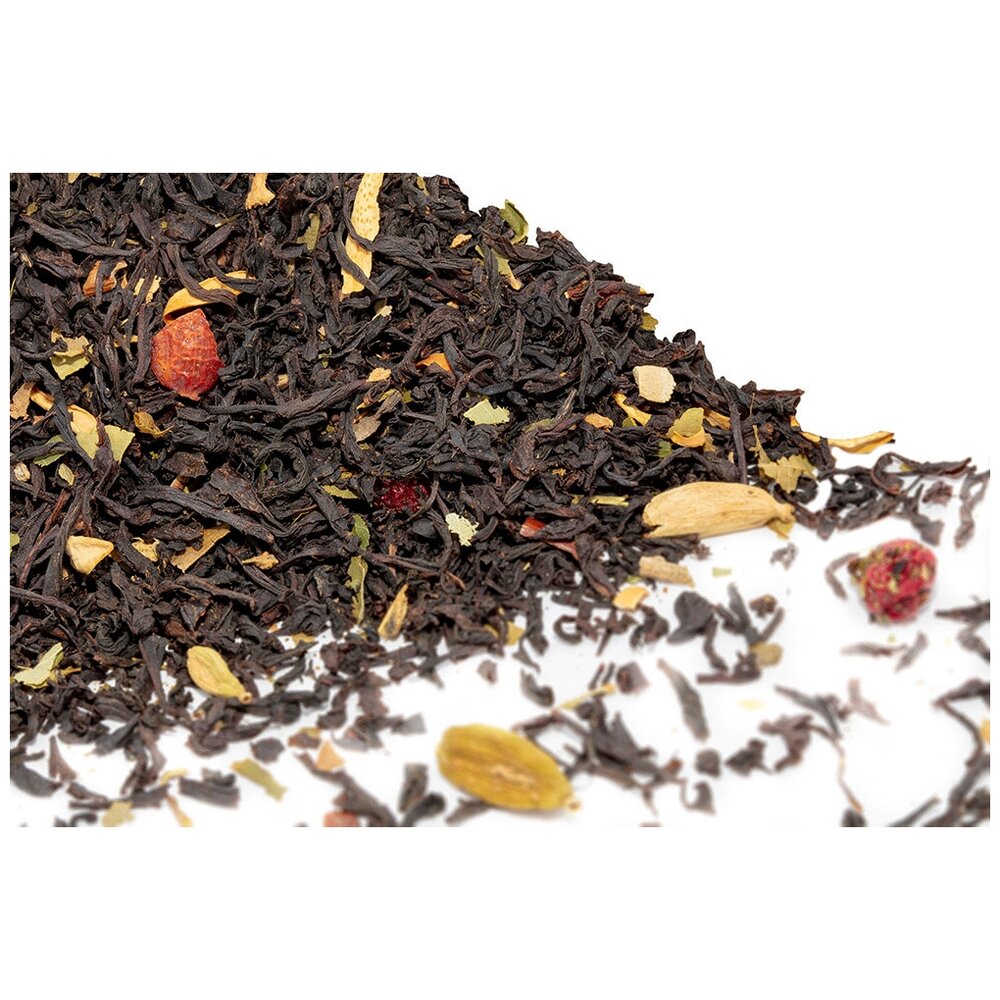 Черный цейлонский чай с добавлением кардамона, ягод брусники, листьев грецкого ореха, кусочков имбиря, долек лимона, кожуры шиповника, изюма, цветов апельсинового дерева, липы и бадьяна. Настой темно-коричневого цвета тонизирует и повышает настроение. Способ приготовления: 1г на 100 мл воды, t 95°C. Время заваривания 5-6 мин.
