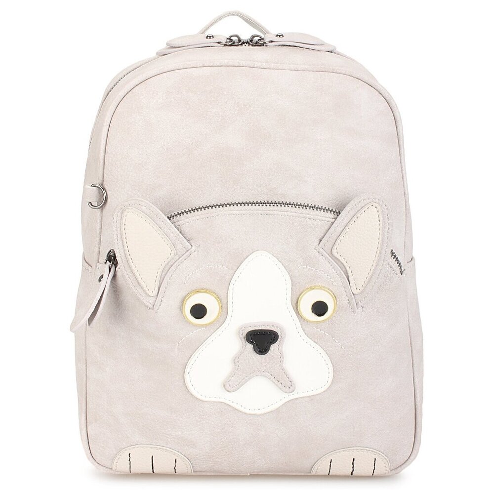Стильный рюкзак из искусственной кожи с изображением мопса на лицевой стороне. Модель с классическим силуэтом, на передней стенке снаружи - вместительный карман с округлым верхом. Основное отделение застегивается молнией с двумя бегунками. В главном отсеке помещается формат А4, аксессуар подойдет для школьников и студентов - учебникам и конспектам места хватит. Особенности: материал верха - искусственная кожа; материал подкладки – текстиль; ширина рюкзака (верх) - 22 см; ширина рюкзака (низ) - 25 см; длина молнии - 49 см; длина лямки - 49 см, удлиняются до 89 см; фурнитура - чёрное серебро.