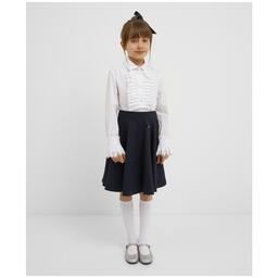 Юбка-солнце, выполненная из джерси, - must have гардероба девочки - ученицы начальной школы! Она подчеркивает нежность и трогательность своей обладательницы, создавая выразительный силуэт и в статике, и в движении. Юбка-солнце - универсальный вариант! Она может быть частью комплекта в классическом, романтическом, деловом стиле, идеально сочетаясь с любой блузкой, водолазкой, жакетом. Юбка дополнена стильным декором. Лаконичный бантик из репсовой ленты с металлической навеской, оформленной стразами, придает модели завершенность. Пояс на резинке гарантирует комфортную посадку изделия на девочках разного телосложения.