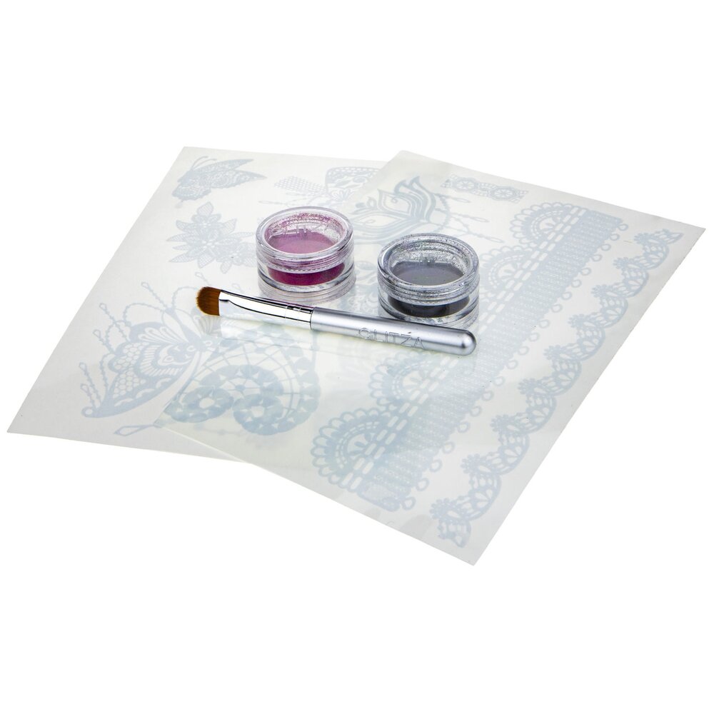 - Дополнительная информация в комплекте: 2 листа с клейкими дизайнами, 2 баночки с блестками (черного и фиолетового цветов) по 1 г и двусторонняя кисточка