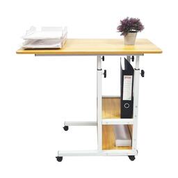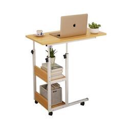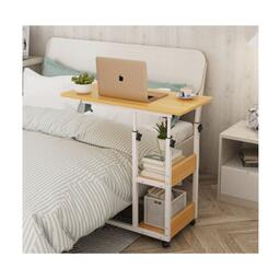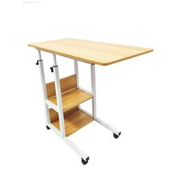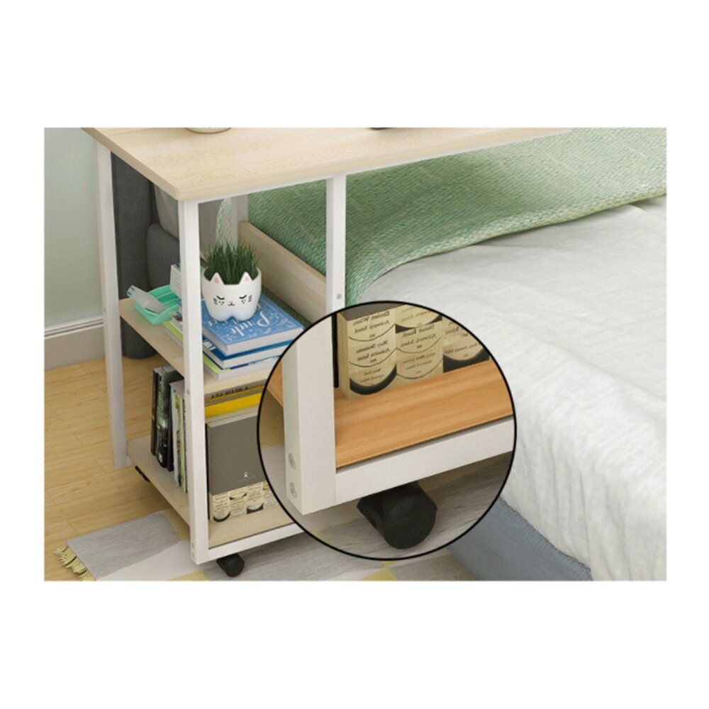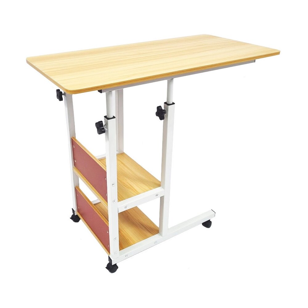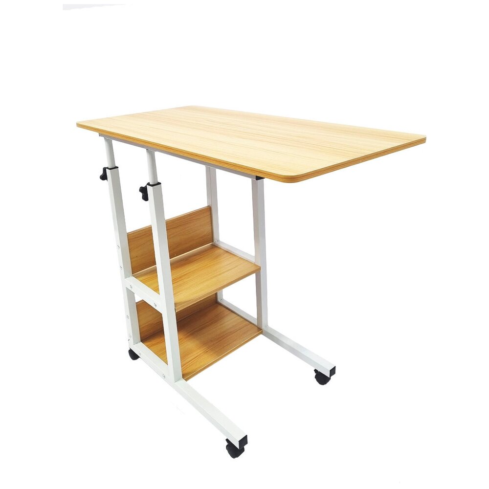 Прикроватный стол для ноутбука или планшета, на колесиках, с регулировкой высоты, с двумя полками сбоку, 40х80х(64-76), бежевый