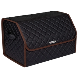 Сумка-органайзер в багажник автомобиля из перфорированной экокожи черная с черной нитью ViceCar с логотипом CITROEN (коричневый кант)