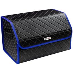 Сумка-органайзер в багажник автомобиля из экокожи черная с серой нитью ViceCar (темно-синий кант) с логотипом AUDI