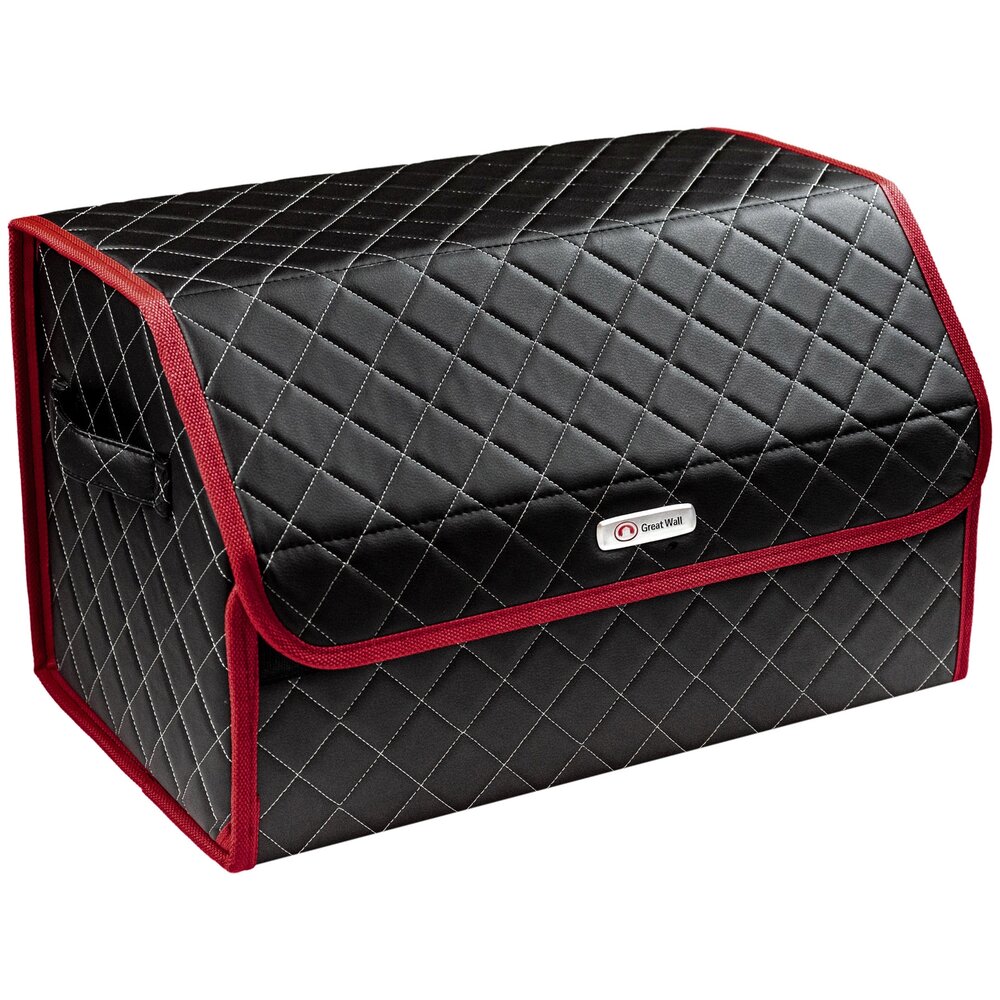 Сумка-органайзер в багажник автомобиля из экокожи черная с серой нитью ViceCar (бордовый кант) с логотипом GREAT WALL