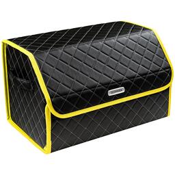 Сумка-органайзер в багажник автомобиля из экокожи черная с серой нитью ViceCar (желтый кант) с логотипом CITROEN