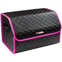 Сумка-органайзер в багажник автомобиля из экокожи черная с серой нитью ViceCar (розовый кант) с логотипом S-LINE
