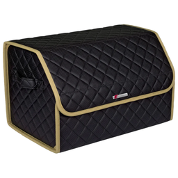 Сумка-органайзер в багажник автомобиля из перфорированной экокожи черная с черной нитью ViceCar c логотипом S-LINE (бежевый кант)