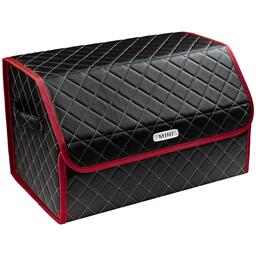 Сумка-органайзер в багажник автомобиля из экокожи черная с серой нитью ViceCar (бордовый кант) с логотипом MINI