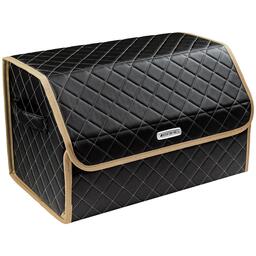 Используется только качественная экокожа, сертифицированный материал, российского производства. Органайзер в багажник из экокожи - предназначен для хранения и транспортировки в багажнике автомобиля инструментов, средств автохимии и автокосметики, автомобильных аксессуаров и прочей поклажи. Сумка оснащена несколькими отсеками и карманами, поэтому в ней очень удобно и практично перевозить различные предметы, сохраняя в багажном отделении чистоту и порядок. Крышка сумки надежно фиксируется липучкой, а для удобства переноса имеются ручки по бокам. Объем 45 литров, сделан вручную, производится в России. Износостойкая экокожа, борты усилены кожкартоном (из него делают обувь). Саквояж неубиваемый. Комплектация Материал: экокожа Цвет: черный с серебристой нитью Окантовка: черная Размер сумки-органайзера: 50 см х 30 см х 30 см.