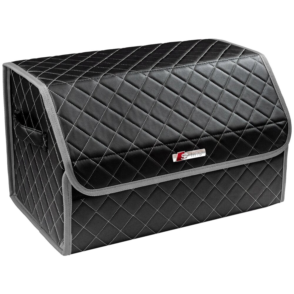 Сумка-органайзер в багажник автомобиля из экокожи черная с серой нитью ViceCar (светло-серый кант) с логотипом S-LINE