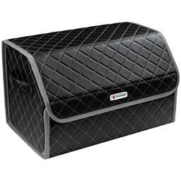 Сумка-органайзер в багажник автомобиля из экокожи черная с серой нитью ViceCar (светло-серый кант) с логотипом SUZUKI