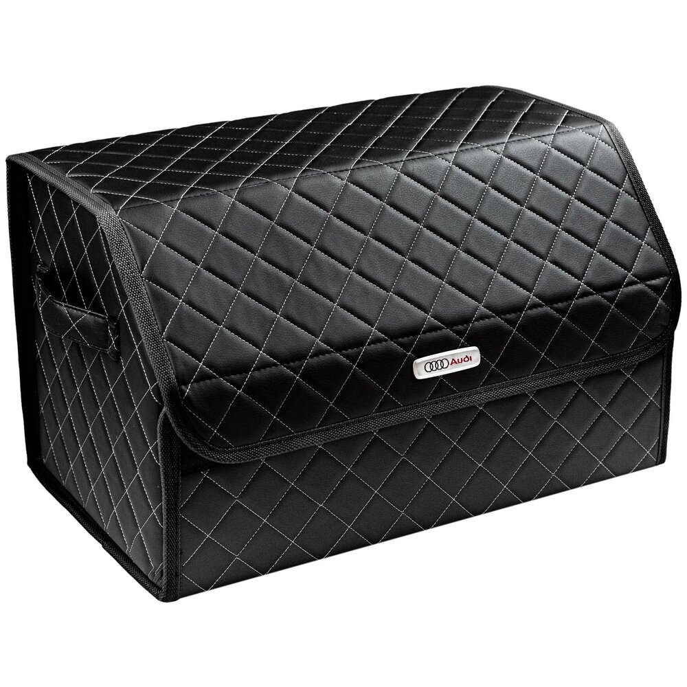 Сумка-органайзер в багажник автомобиля из экокожи черная с серой нитью ViceCar (черный кант) с логотипом AUDI