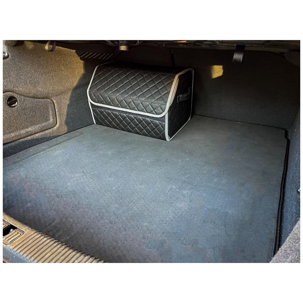 Органайзер в багажник из экокожи - предназначен для хранения и транспортировки в багажнике автомобиля инструментов, средств автохимии и автокосметики, автомобильных аксессуаров и прочей поклажи. Сумка оснащена несколькими отсеками и карманами, поэтому в ней очень удобно и практично перевозить различные предметы, сохраняя в багажном отделении чистоту и порядок. Крышка сумки надежно фиксируется липучкой, а для удобства переноса имеются ручки по бокам. Объем 45 литров, сделан вручную, производится в России. Износостойкая экокожа, борты усилены кожкартоном (из него делают обувь). Саквояж неубиваемый.