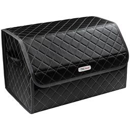 Сумка-органайзер в багажник автомобиля из экокожи черная с серой нитью ViceCar (темно-серый кант) с логотипом AUDI
