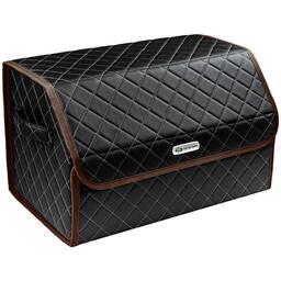 Сумка-органайзер в багажник автомобиля из экокожи черная с серой нитью ViceCar (коричневый кант) с логотипом LAND ROVER