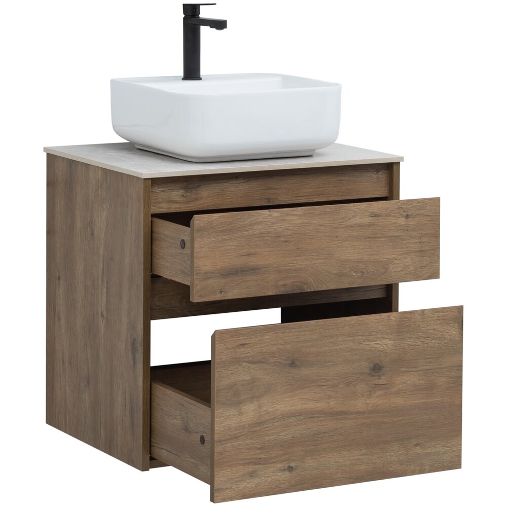 Раковина в комплект поставки не входит. С тумбой под раковину Aquanet Nova Lite 60 дуб рустикальный (2 ящика) рекомендуем приобрести раковину Aquanet Латина 60, код товара 00242905.