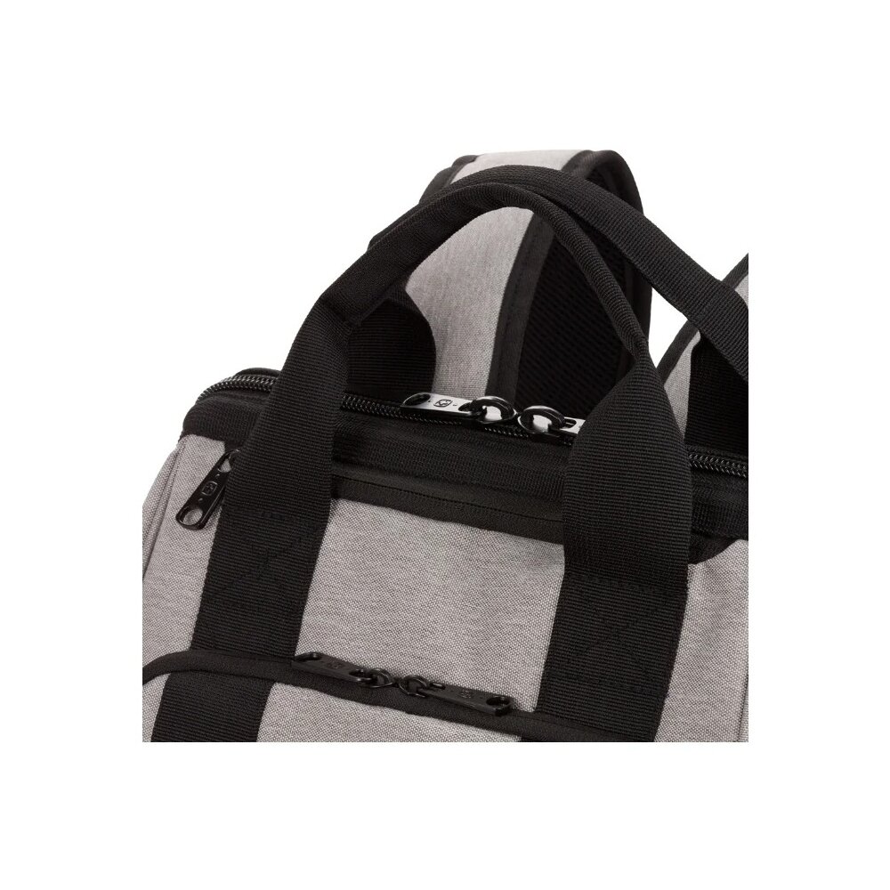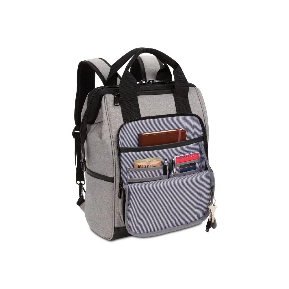 SWISSGEAR - функциональные рюкзаки с необычным дизайном, которые подойдут как тем, кто предпочитает деловой стиль, так и студентам.<br />Рюкзаки были разработаны по типу медицинских саквояжей, используемых в XIX - XX веках и оснащены дополнительными карманами и отделениями для улучшения функциональности. Передний карман-органайзер с мягким отделением для планшетного компьютера, основное большое отделение с карманом для ноутбука 16,5” бережно организуют и сохранят все необходимые вещи. Мягкие плечевые ремни анатомической формы и большая ручка для переноски позволяют трансформировать рюкзак в сумку. Рукав на спинке рюкзака позволит закрепить его на телескопической ручке чемодана и использовать в качестве ручной клади.<p>Отделение с мягкими стенками подходит для большинства ноутбуков с диагональю экрана до 16,5''.<br />Карман для планшетного компьютера / документов с мягкими стенками обеспечивает безопасную и удобную переноску планшетного компьютера<br />Карман-органайзер для мелких предметов включает ключницу и многочисленные кармашки для пишущих принадлежностей, документов и карты памяти, телефона, сетчатый карман на молнии для проводов и адаптеров<br />Карман в передней части рюкзака подходит для хранения самых необходимых вещей, аксессуаров и телефона.<br />Потайной карман в спинке рюкзака: Потайной карман на молнии в спинке рюкзака подойдет для хранения документов<br />Боковые карманы для бутылок/зонта:<br />Боковые эластичные карманы подходят для хранения бутылок с водой и зонта<br />Рукав для крепления к чемодану: Специальный рукав позволяет зафиксировать сумку на телескопической ручке чемодана для удобного перемещения нескольких предметов багажа<br />Система циркуляции воздуха Airflow: Спинка рюкзака с системой циркуляции воздуха имеет специальную рельефную поверхность, обеспечивает удобное прилегание к спине и вентиляцию<br />Плечевые ремни:<br />Эргономичные регулируемые плечевые ремни анатомической формы, оснащенные пропускающей воздух набивной подкладкой, обеспечивают максимальный комфорт при ношении рюкзака<br />Рюкзак можно трансформировать в сумку! Для трансформации рюкзака в сумку, плечевые ремни отстегиваются и убираются в карман в спинке рюкзака.</p>