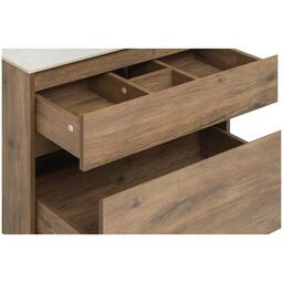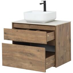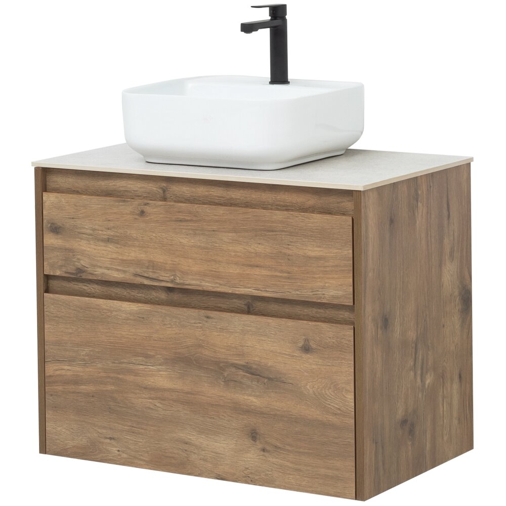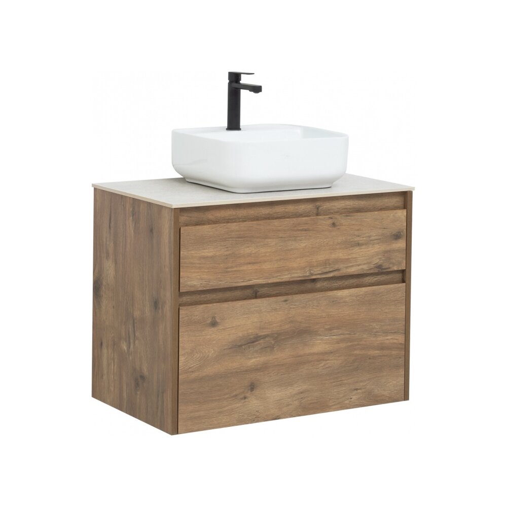 Тумба под раковину Aquanet Nova Lite 75 из влагостойкой ламинированной древесно-стружечной плиты в изысканном цвете «дуб рустикальный» имеет достойный вид. Фактура натурального дерева выглядит благородно, а подвесной монтаж придает визуальную легкость тумбе шириной 75 см. Она оборудована двумя выдвижными ящиками. Ящики довольно вместительные и позволяют разместить все необходимое. Фасады выполнены с декоративной интегрированной ручкой, не имеющей острых краев и внутренних углов, что обеспечивает удобство в эксплуатации и легкий уход за мебелью. Ящики комплектуются направляющими немецкого производства Hettich Quadro, оснащенными доводчиками. Для комплектации тумбы можно выбрать: либо неглубокую стильную встраиваемую керамическую раковину «Латина», либо столешницу, в которой уже предусмотрено отверстие для установки накладной раковины.