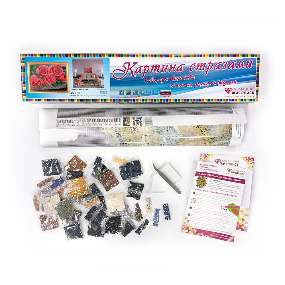 Алмазная живопись Набор алмазной вышивки Прекрасные розы (АЖ-1170) 50х35 см