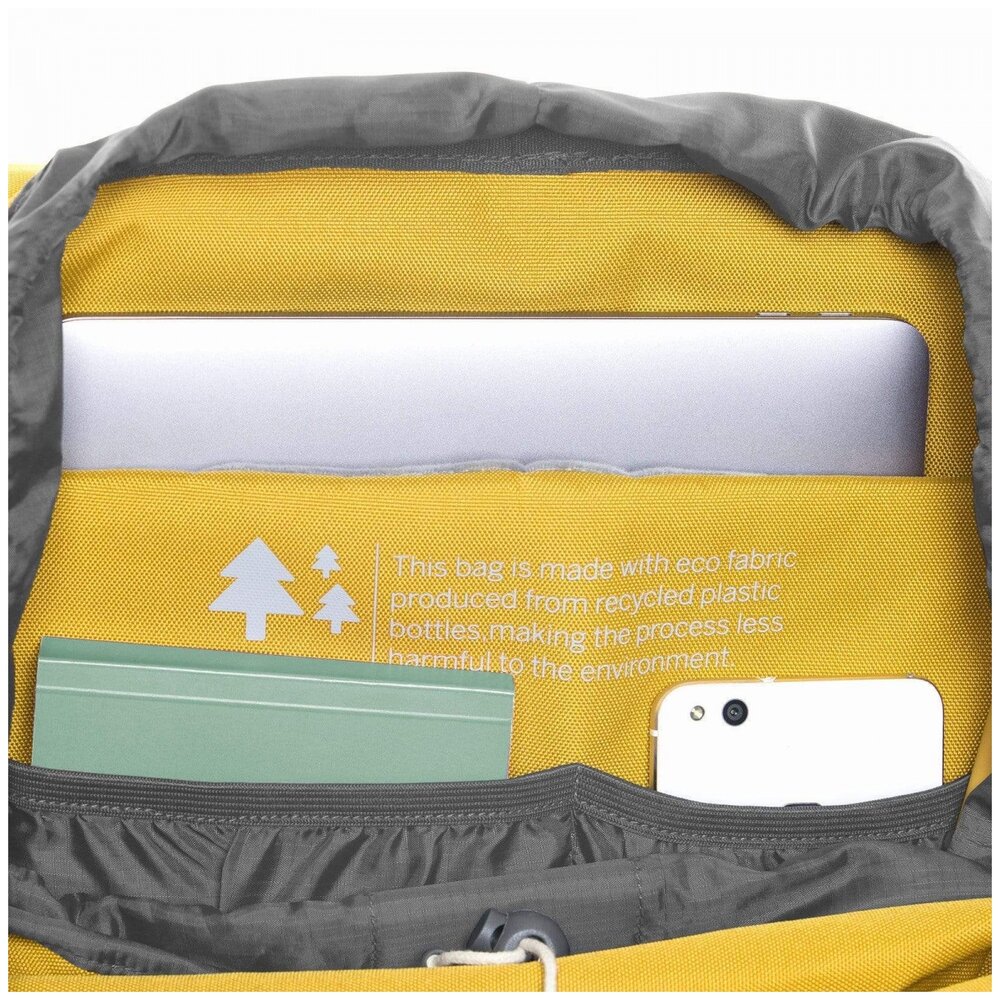 Вместительный и легкий рюкзак хорошо подойдет как для ежедневного пользования, так и путешествий или отдыха на природе. Рюкзак оснащен вместительным центральным отделением с застежкой на шнурке, куда поместится ноутбук с диагональю 13,6 дюйма, задним карманом и небольшим внешним карманов на молнии. Материал: переработанный полиэстер из ПЭТ-бутылок с прочным, водонепроницаемым покрытиемРазмеры: 40x32x20смВес: 450 гр