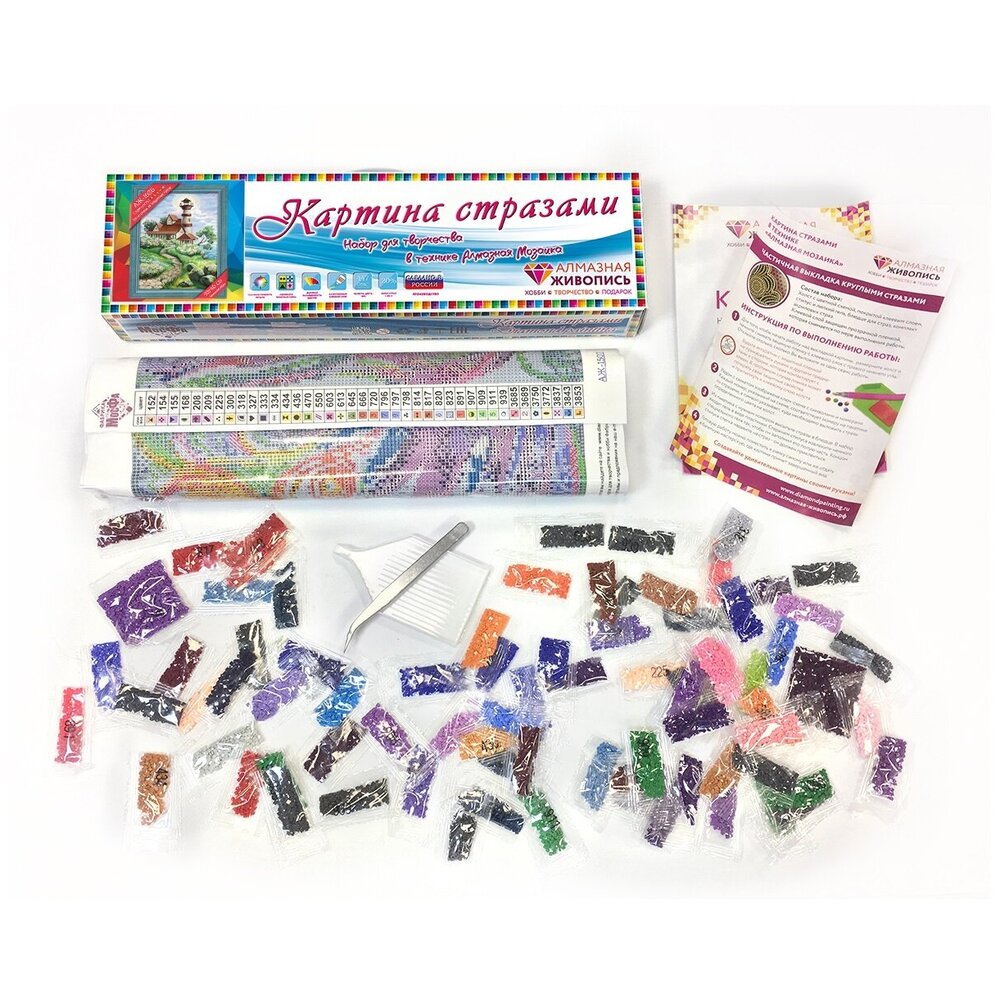 Элементы мозаики представляют собой акриловые стразы размером 2,5 х 2,5 мм. Поверхность страз имеет 9 граней, которые очень эффектно отражают свет. Состав набора: Холст с цветной схемой и клеевой основой<br />Пинцет или стилус Лоток для страз Комплект квадратных страз<br />Инструкция по работе. Размер готовой работы, см: 30х40. Число цветов, шт: 46. Уровень сложности набора: 4*. Тип страз: квадратные. Тип выкладки: полная.<br />Все, что нужно — уже в коробке. Просто выберите любимый сюжет и приступай-те к творчеству!.