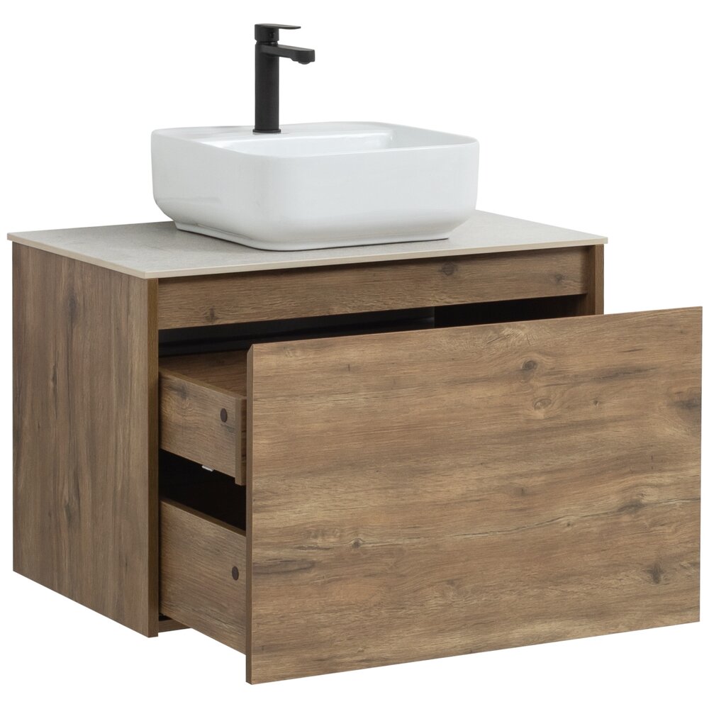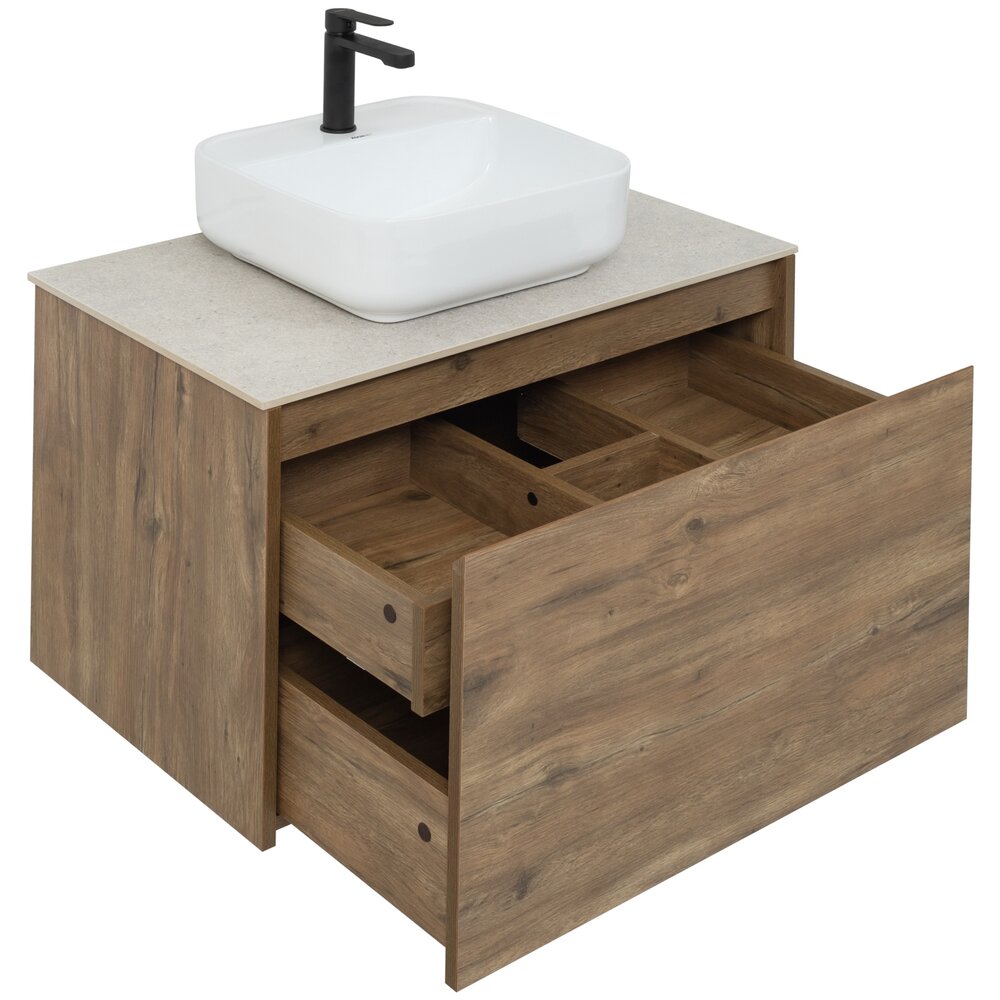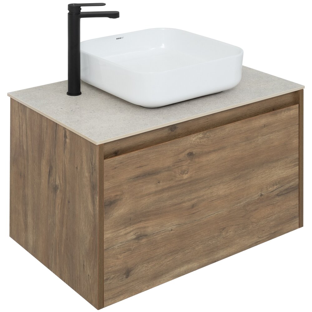 Раковина в комплект поставки не входит. С тумбой под раковину Aquanet Nova Lite 75 дуб рустикальный (1 ящик) рекомендуем приобрести раковину Aquanet Латина 75, код товара 00242338.