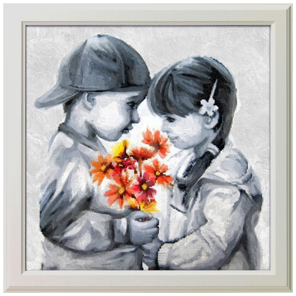 Алмазная живопись Набор алмазной вышивки Дети с букетом (АЖ-1295) 30х30 см