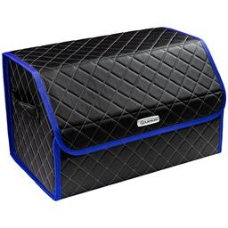 Сумка-органайзер в багажник автомобиля из экокожи черная с серой нитью ViceCar (темно-синий кант) с логотипом LEXUS