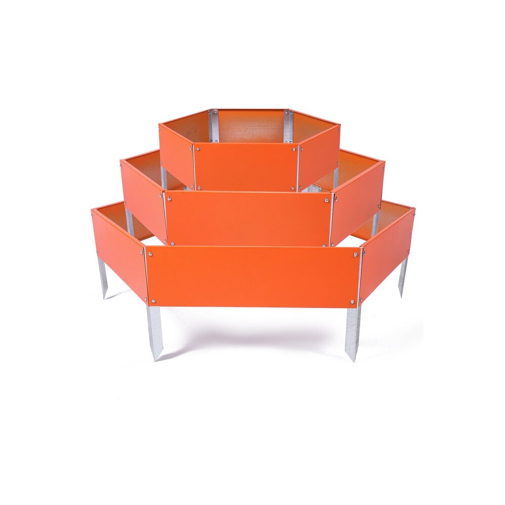 Многоярусная клумба позволит создать компактную композицию даже на небольшом участке. За счет вертикального расположения растений на малой площади вы сможете разместить цветы нескольких сортов. Для работы над каждой зоной вам не придется сильно наклоняться. Кроме того, земля в такой грядке прогревается быстрее, и начинать посадку можно раньше. Зимой используйте укрывной материал. Бортики изделия из оцинкованной стали прочные и долговечные. Жесткий каркас не боится морозов и ультрафиолета. Он не гниет, не ломается, не требует покраски.