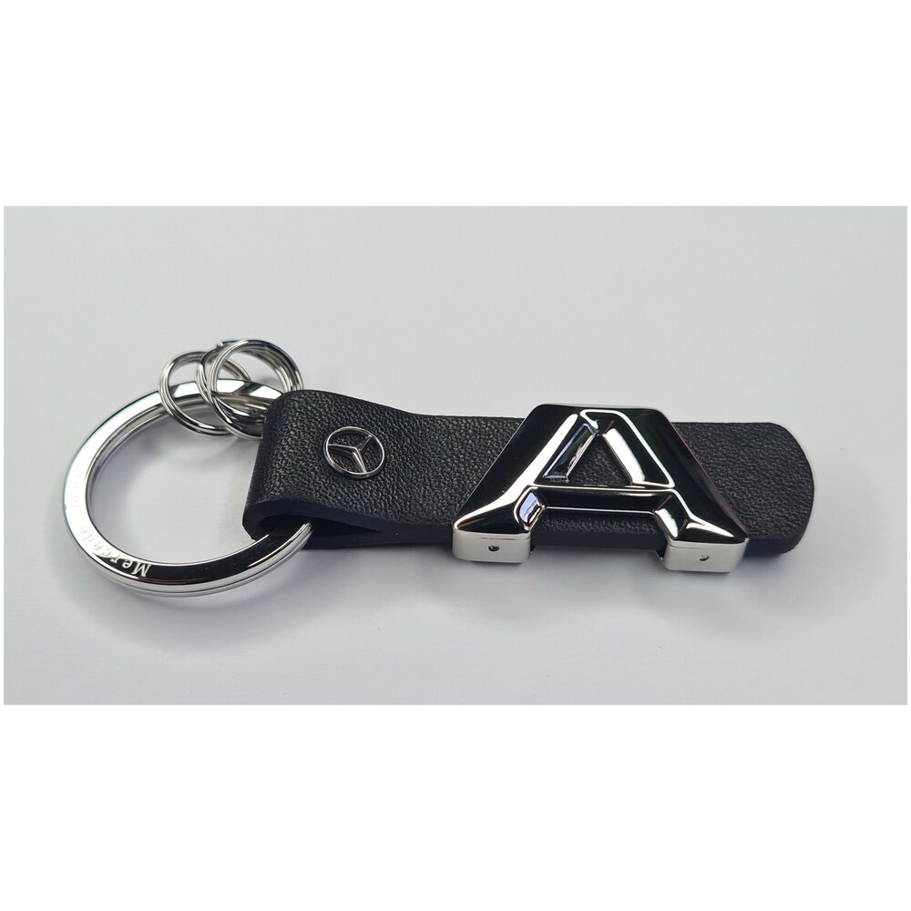 Брелок для ключей "Мерседес Бенц". Имитирует буквы на задней части автомобиля Мерседес А сlаss ( А класс ). Материал: нержавеющая сталь и кожа. Одно большое и три маленьких кольца для ключей. Звезда "Мерседес" на кожаном элементе. B66957995