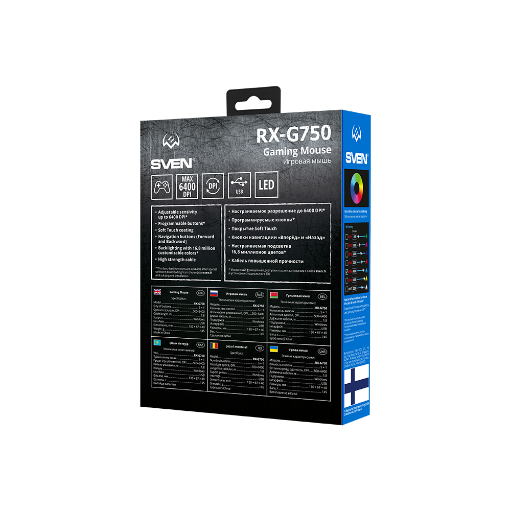 Дизайн игровых манипуляторов не обязательно должен быть агрессивным, в нем всегда есть место изяществу. Лучшее доказательство этому — мышь SVEN RX-G750, сочетающая самые востребованные киберспортсменами функции со строгими и стильным оформлением, эффектно подчеркнутым многозонной динамической подсветкой RGB-подсветкой, динамически переливающейся в волновом движении с поддержкой 16,8 млн цветовых оттенков.Форма корпуса не только приятна глазу, но и обеспечивает надежный хват во время продолжительных игровых сессии. А покрытие Soft Touch не даст мыши выскользнуть из рук, заодно добавляя приятных тактильных ощущений.С «начинкой» у SVEN RX-G750 тоже все в порядке. Разрешение регулируется в широких пределах — от 500 до 6400 DPI, что позволяет подобрать оптимальные значения для любой игры и разрешения дисплея, а потом оперативно переключаться между ними в нужный момент с помощью специальной кнопки. Кстати, клавиш у мыши 5, плюс нажимаемое колесико. «Тайным супероружием» геймера, конечно, станут программируемые кнопки с возможностью настройки макросов, которые позволят по-новому взглянуть на управление игровым процессом.Если вы вдруг решите использовать SVEN RX-G750 для работы, она прекрасно покажет себя и как помощница в делах. Навигационные кнопки «вперед» и «назад» пригодятся не только в играх, но и при работе в офисных приложениях, браузере и так далее. А настройки чувствительности можно менять при переходе от интернет-серфинга к редактированию изображений, например. Один раз взяв SVEN RX-G750 в руки, вы уже не захотите с ней расставаться. Ну а увидев ее цену поймете, что отказывать себе в новой «боевой подруге» нет никакого смысла. Убедиться в этом можно уже прямо сейчас, игровая мышь недавно появилась в каталогах крупных магазинов электроники.