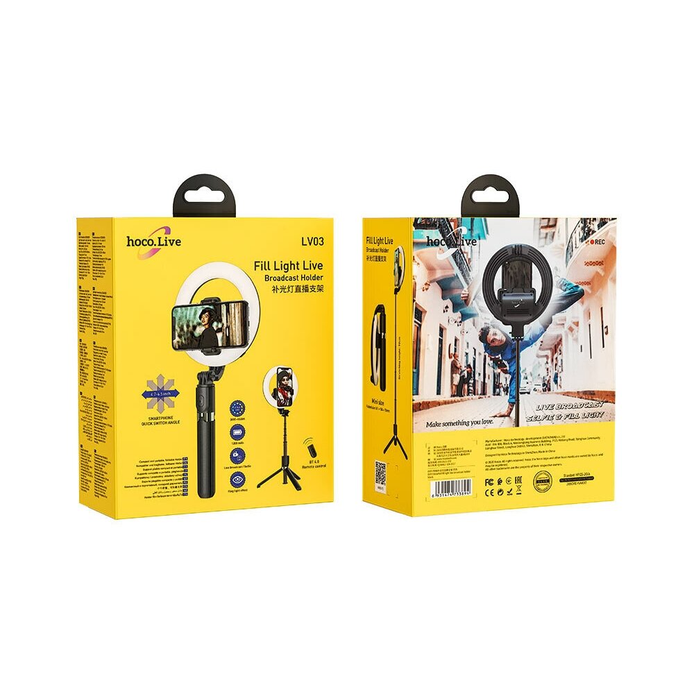 Комплект держатель+кольцо для селфи, на аккумуляторах LV03, Hoco
