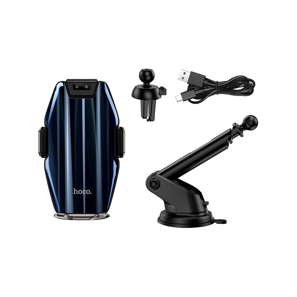 Держатель автомобильный на стекло/торпеду/решетку c беспроводной зарядкой автоматический, S45, HOCO, серый