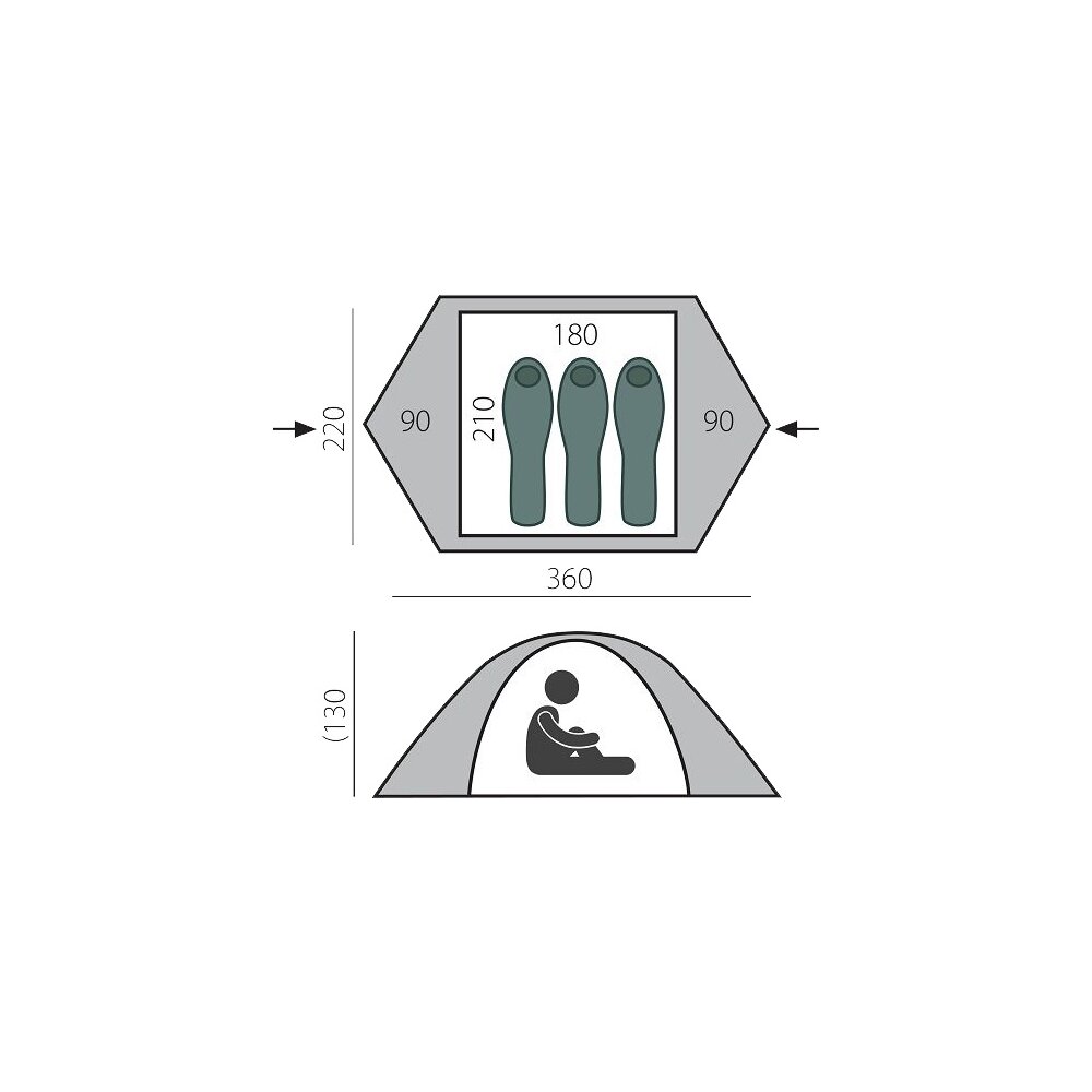 • Размеры внешней палатки (ДхШхВ) 360x220x130 см