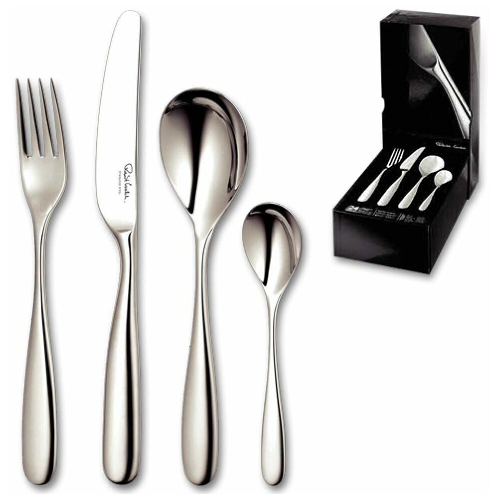 - В набор входит 6 столовых вилок, 6 чайных ложек, 6 столовых ложек, 6 столовых ножей