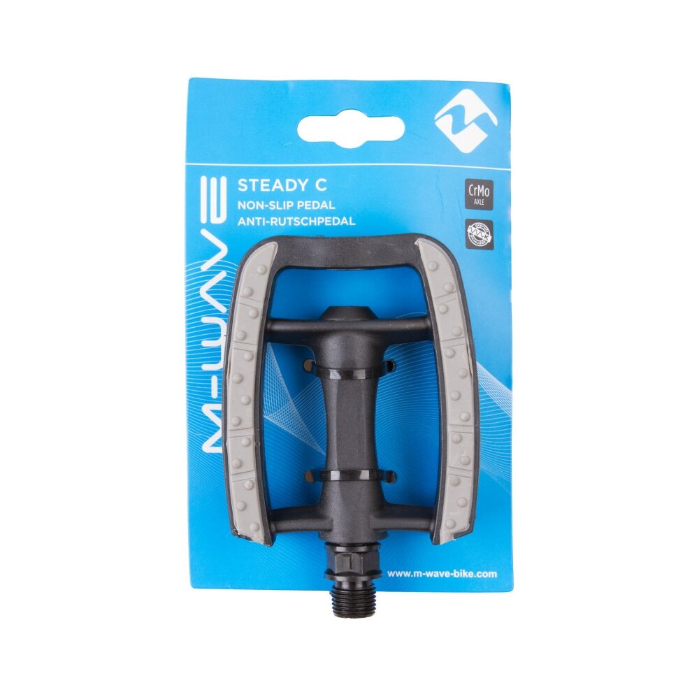 Педали 5-311041 пластиковые с пластиковые ободом, с антискользящими резиновым покрытием c шарикоподшипниками 80*95мм, серебристый-черные (на блистере) M-WAVE